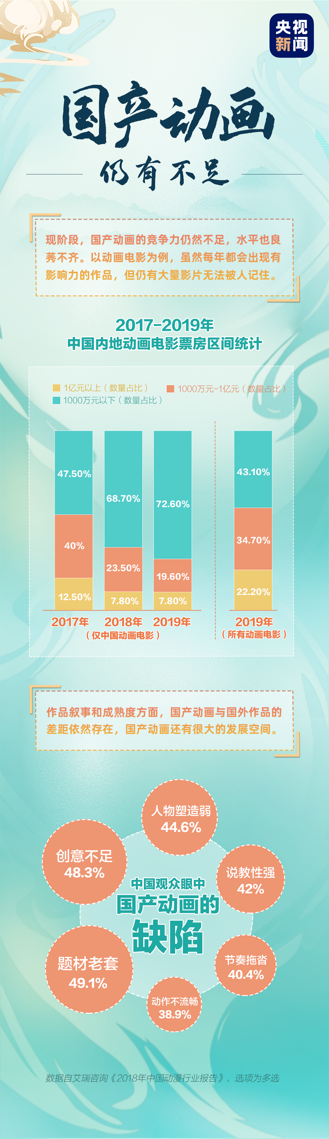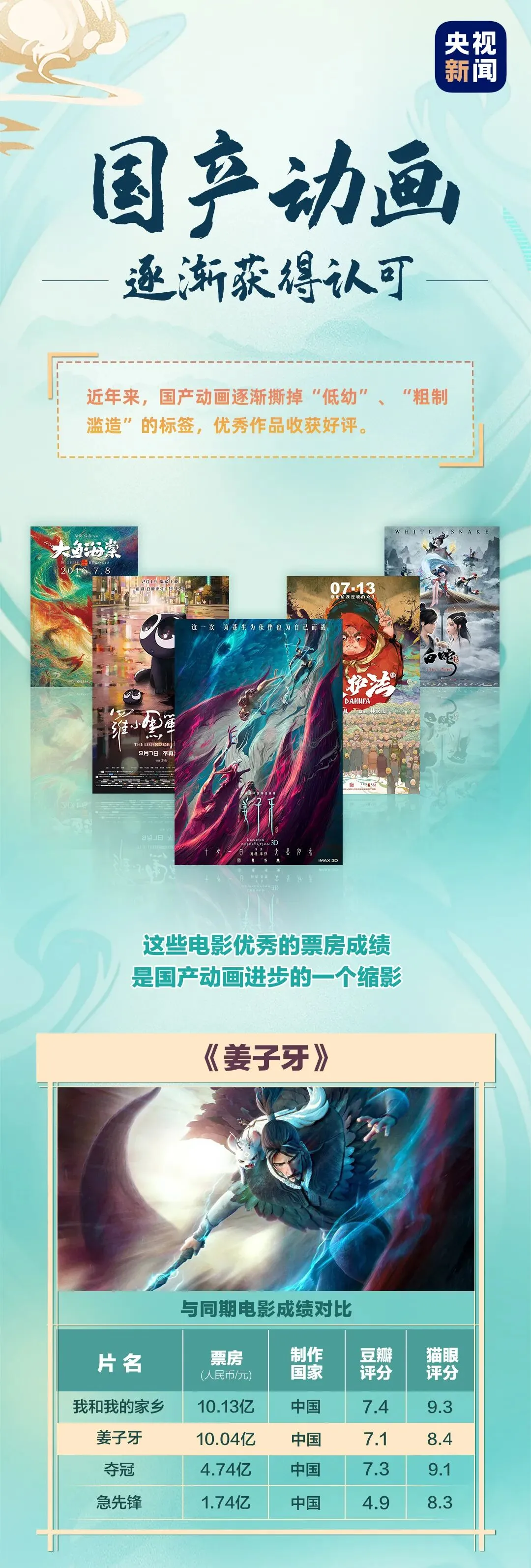 近年来,国产动画越来越受到大众关注。动画电影方面,《西游记之大圣归来》《哪吒之魔童降世》《罗小黑战记》等均收获不少好评。网络上,《大理寺日志》《雾山五行》《元龙》等作品也获得网友高度认可。国产动画近年来成绩如何?中国动画在哪些方面仍存不足?一组图解,带你了解↓↓↓