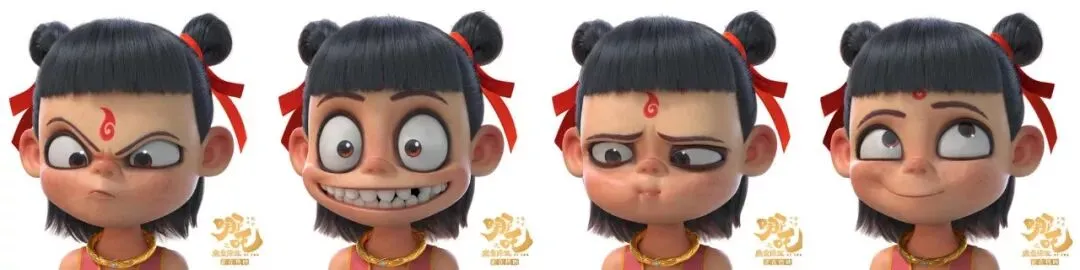 这个画着烟熏妆,有着鲨鱼牙、塌鼻子、锅盖刘海,像个“熊孩子”的小孩,就是电影的主角——哪吒。