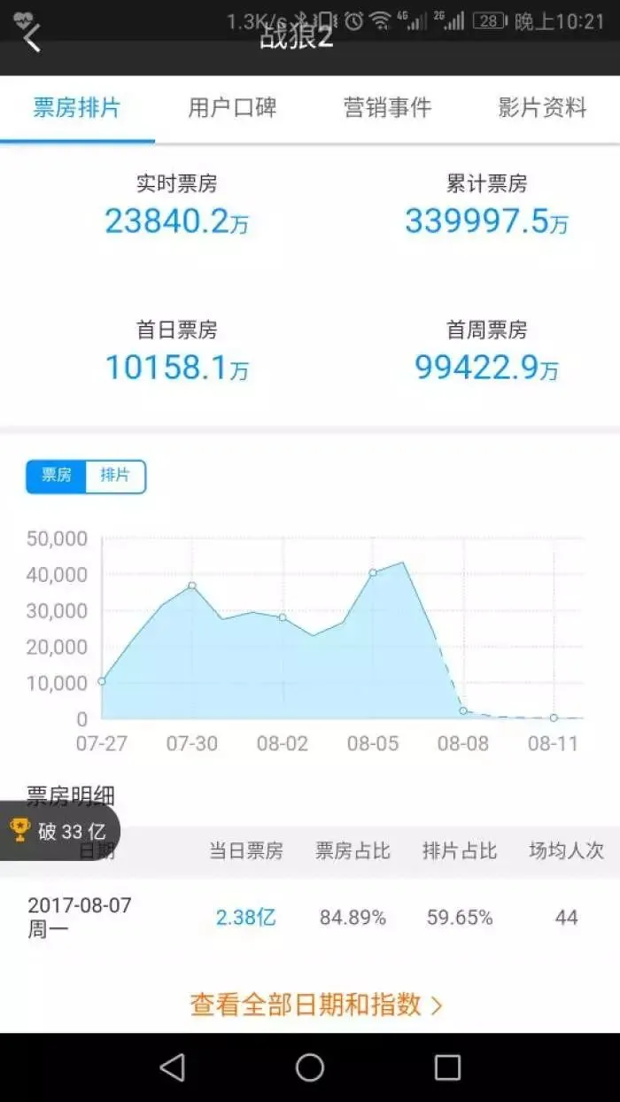据格瓦拉实时票房统计,由吴京自导自演的《战狼2》至今已获得33.99亿票房,超过了周星驰执导的《美人鱼》(33.9亿),正式登顶中国电影票房冠军的宝座。