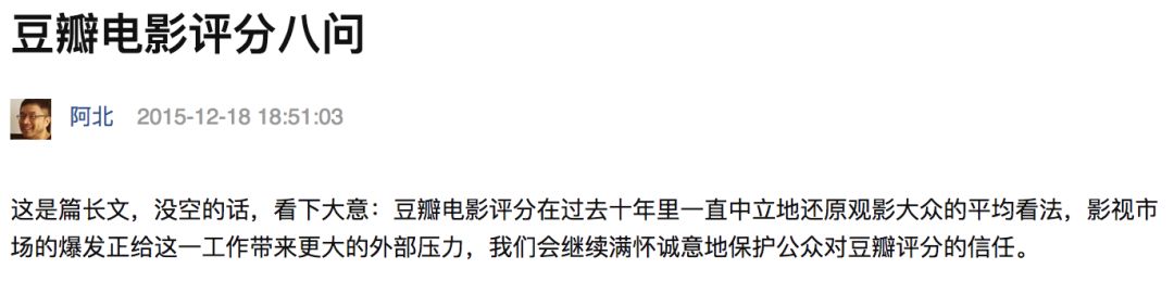 豆瓣方面在接受记者采访时也表示,反非正常评分策略会根据刷分行为的变化而变化,但目前具体的规则并不方便透露。“2015年豆瓣CEO阿北在《豆瓣电影评分八问》中的回答,现在仍然适用。”