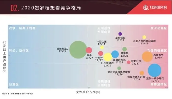 2020年贺岁档影片“想看”竞争格局。来源:灯塔研究院。