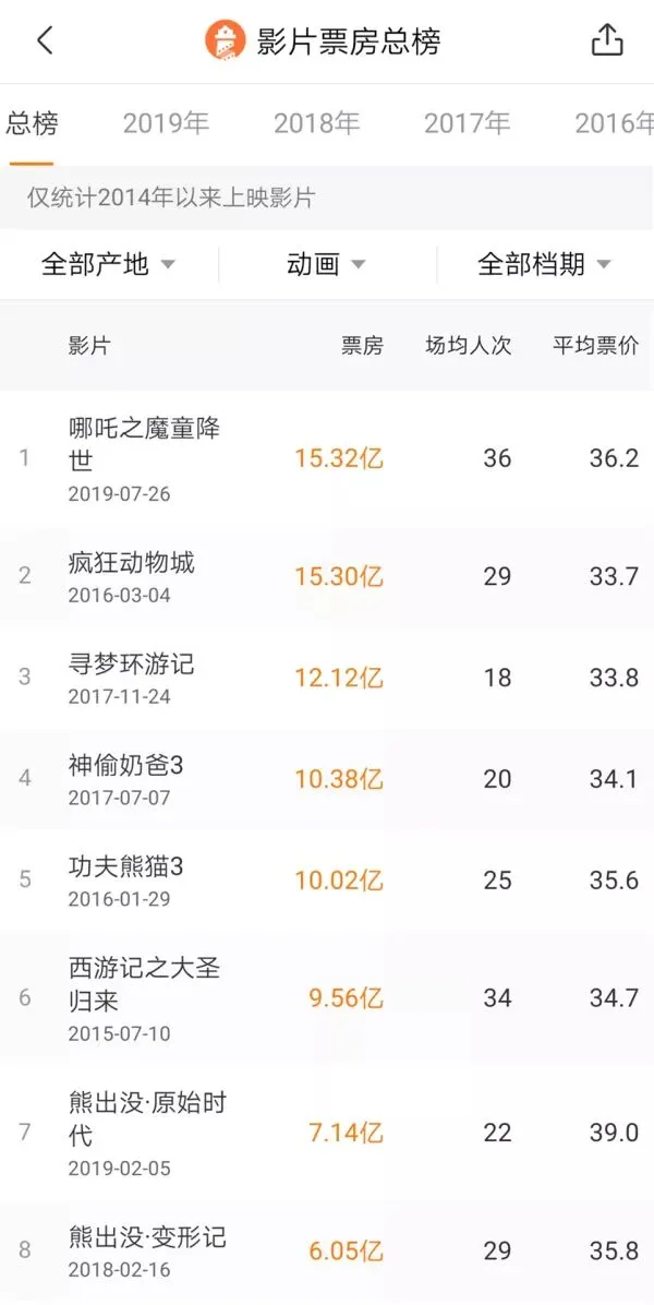 截至8月2日12时许,《哪吒之魔童降世》票房超过《疯狂动物城》,位列中国影史动画电影票房第一。