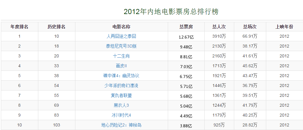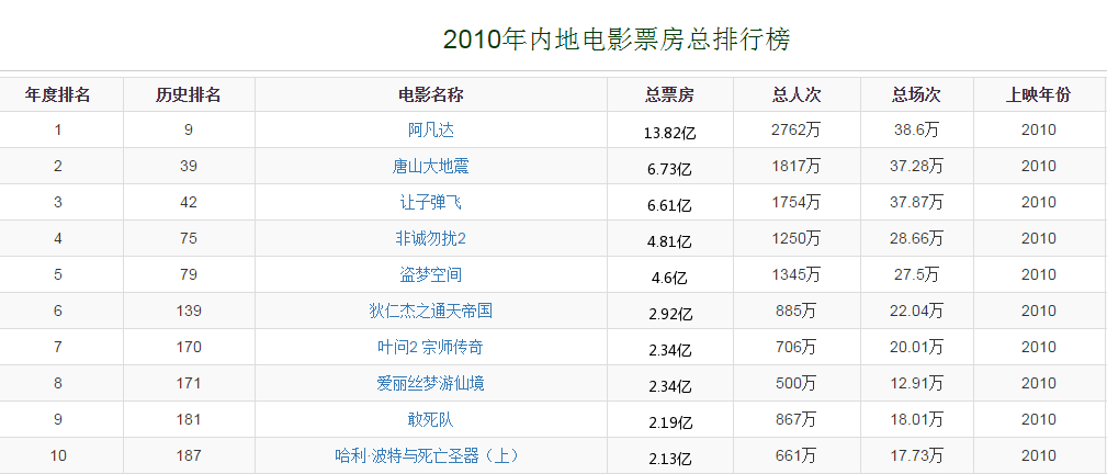 数据显示,在随后的5年里,中国电影的票房飞速增长,2010年最高票房达到了14.82亿是2009年最高票房的三倍之多,