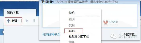 然后打开迅雷——点击【新建】——在下载框中【右击】选择【粘贴】