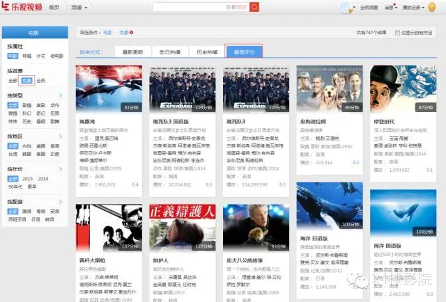 以乐视为例,选择【免费】,按【最高评分】排序,也能淘到不少经典电影。