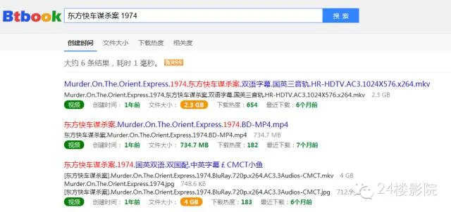 使用方法也更为复杂一点,以Btbook为例,假设要下载《东方快车谋杀案》,在搜索栏中输入片名,这部小说被翻拍过好几次,所以还需要加上你需要的那部年份,会出现非常多链接,选择其中的一个即可。