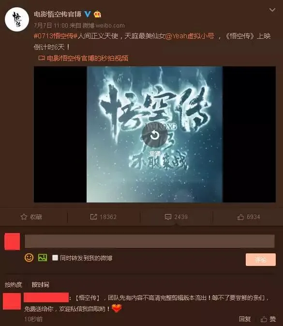 可以以免费送“悟空传”为名,为自己的微博涨粉,同时也可以把自己的微博打造成影视资源类的账号,提供其他一些比较受欢迎的资源。