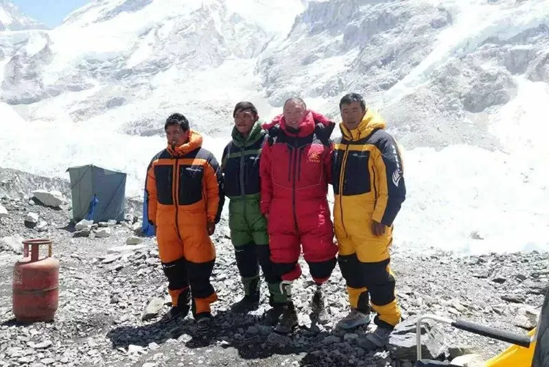 与国家登山队的一百多名队员一起登珠峰