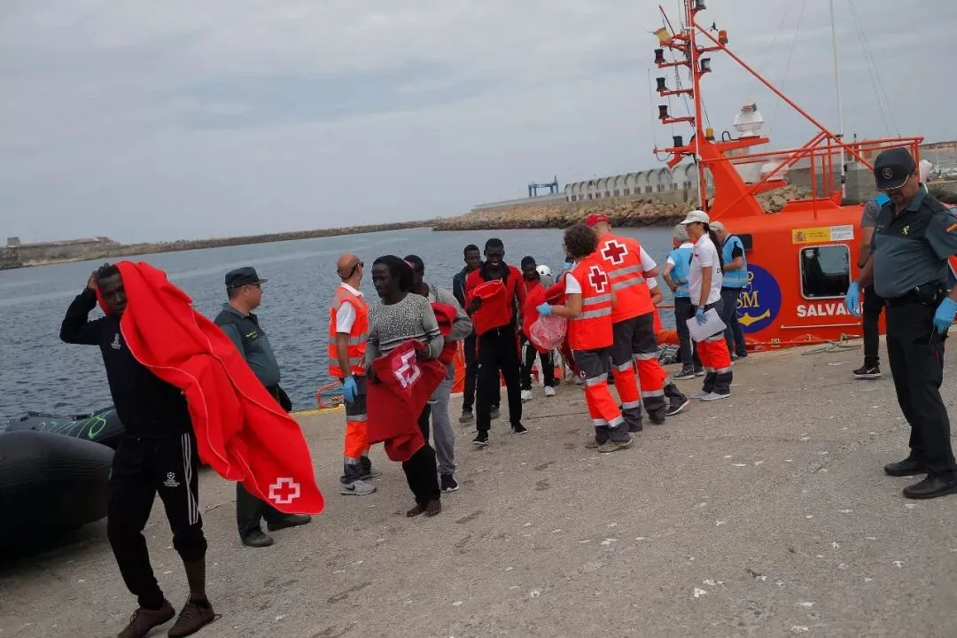△非法移民在西班牙港口上岸