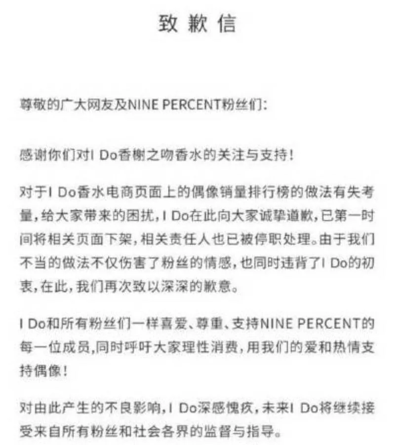 这样赤裸裸的敛财方式招致许多网友不满,粉丝也觉得受到侮辱,随后I Do的官方微博发布了道歉声明。