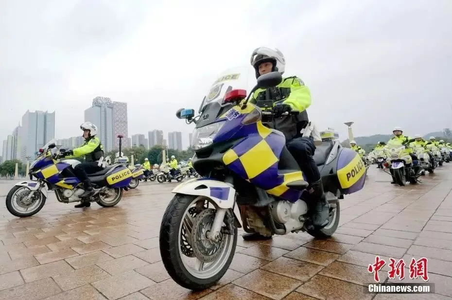 昨日,广西柳州市交警部门组建的“铁骑”交警队伍首次亮相街头。125辆警用巡逻摩托车驶向大街小巷,充分发挥灵活机动优势,投入到紧张的春运社会巡逻防控安保工作中。