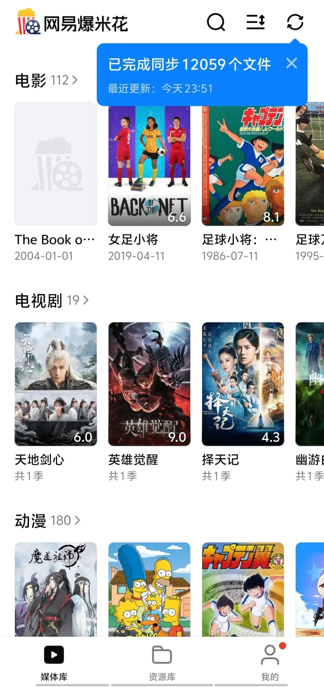 112部电影、19 部电视剧、180部动漫、1部综艺、1部纪录片,整齐排列,一目了然。