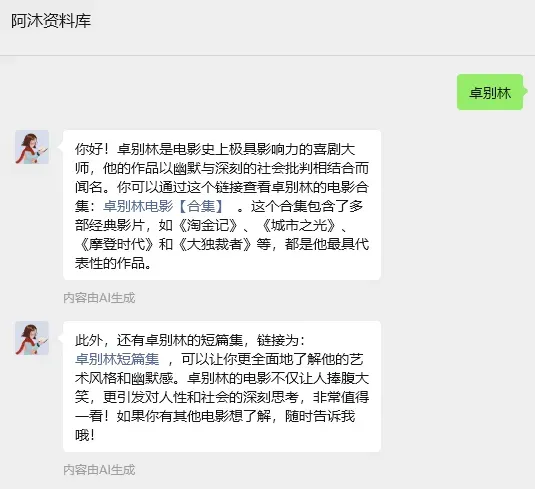 如想找单个电影,可直接发送电影名称,已配置好ai助理,会自动在资源库中匹配经典电影资源发送。以下为部分经典电影资源目录