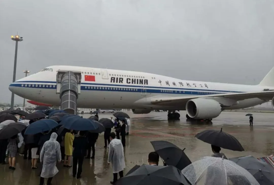 △雨中迎接专机并不常见。(央视记者杨立峰拍摄)