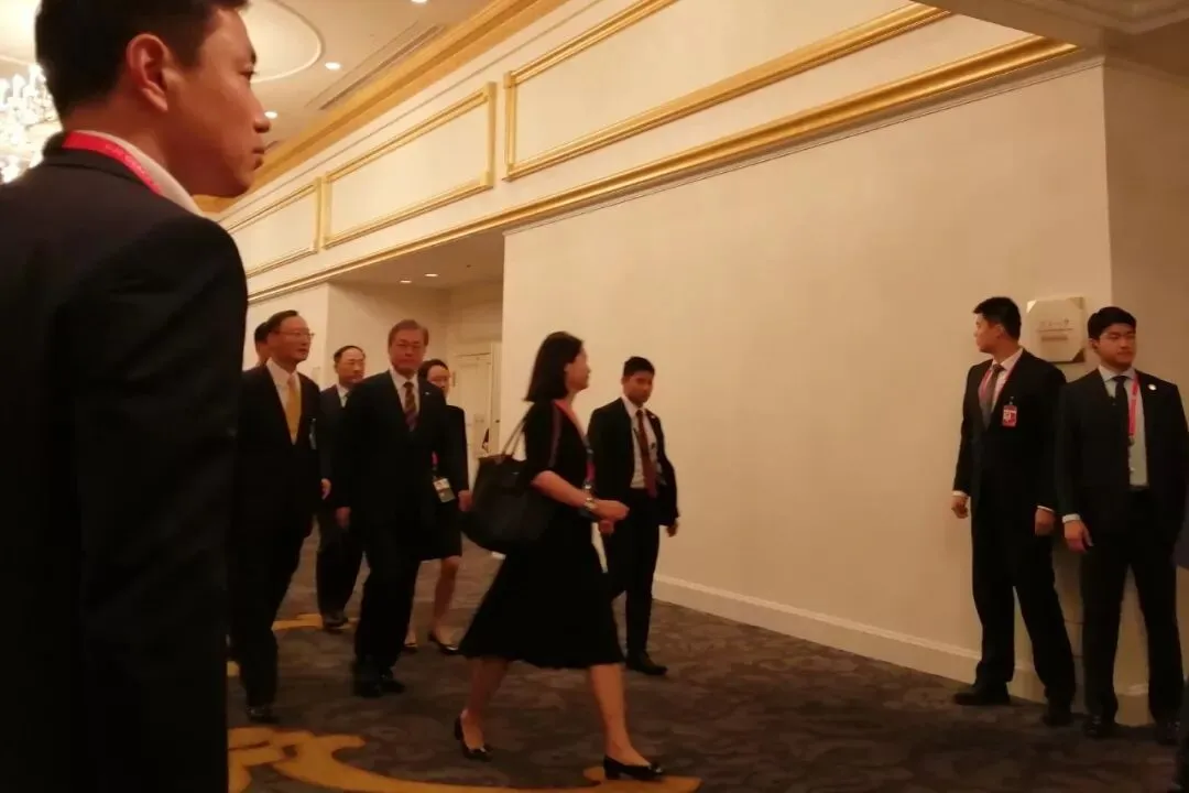 △文在寅总统步入会见现场。(央视记者许永松拍摄)