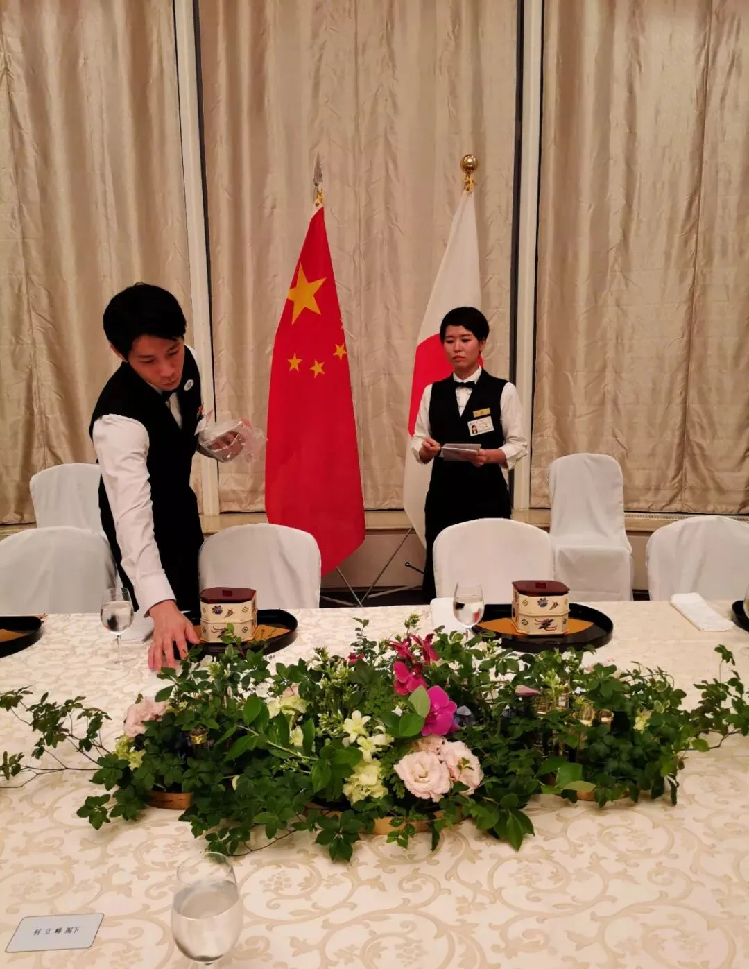 △晚宴现场,工作人员正在做相关准备。(央视记者李铮拍摄)