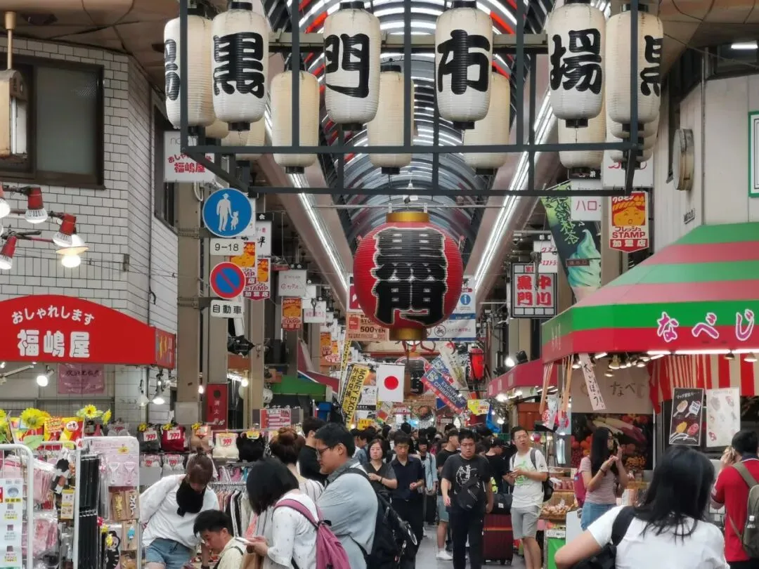 △距离大阪市中心不远的黑门市场是“吃货”福地,它有近200年历史,最初主要卖海鲜水产,因为旁边寺院大门是黑色而得名。(央视记者张晓鹏拍摄)
