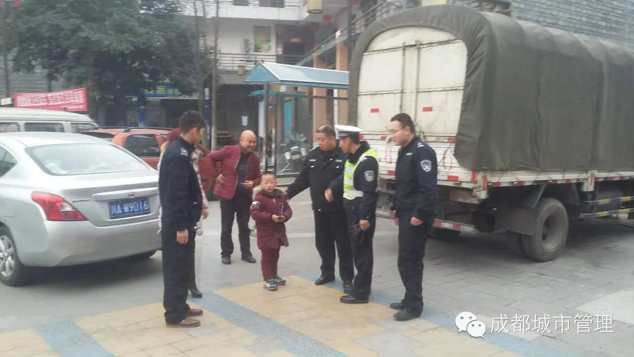 1月29日,都江堰的城管蜀黍在巡逻时,发现一个小男孩在路边啼哭不止,便上前询问,原来这个小男孩独自出来买东西,但却找不着返回的路。在确认小男孩是走失后,这名城管蜀黍立即召集周边社区巡逻队员去寻找男孩的家人,终于在一家茶楼找到男孩父亲后,平安将他送还。