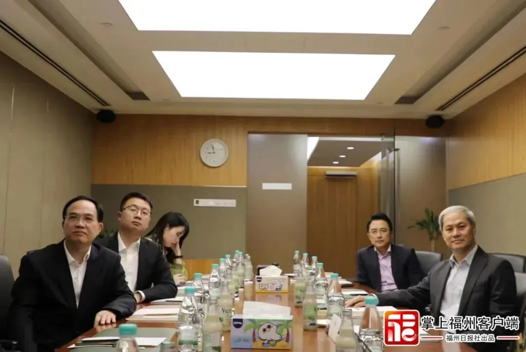 林宝金(左一)听取马来西亚郭氏兄弟公司在榕项目情况介绍(图片来源:掌上福州客户端)