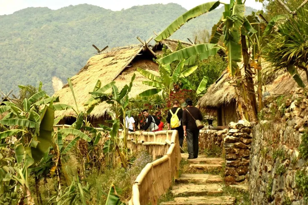 △春节期间,《熊猫计划之部落奇遇记》取景地翁丁古寨迎来游客高峰。