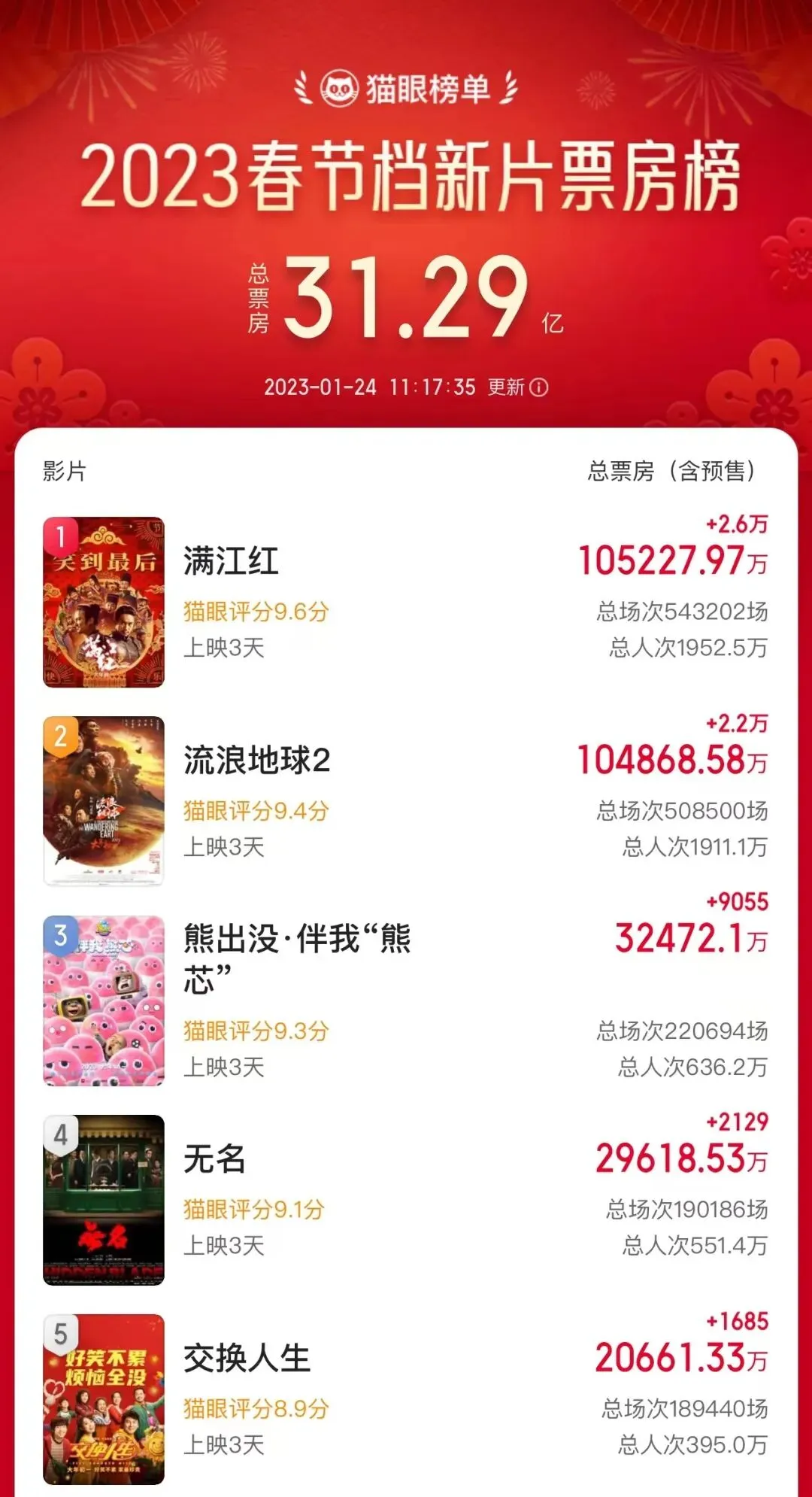 国家电影局统计数据显示,截至今天(24日)零点,兔年电影春节档,用两天时间取得了超28亿元的成绩。国产影片纷纷发力,拓展内容与表达方式,用作品吸引观众走进影院,助力中国电影市场快速复苏。用心打磨作品,为的是让观众有更加丰富的观看体验。一起来看总台记者对导演张艺谋的独家专访。 已关注 关注 重播 分享 赞 视频详情 导演 张艺谋:在冬奥之前,《满江红》这个剧本打磨有四五年了,冬奥之前就一直在打磨,就希望拍这样一个作品。我很喜欢那种人在困局中想破局的那种挣扎,人性的东西会展现出来,我觉得很有意思。张艺谋介绍,此次在春节档上映的《满江红》,采用“悬疑+喜剧”的题材类型,在不断情节反转中完成影片叙事,是自己的一次全新尝试。导演 张艺谋:同时我也很喜欢传统艺术中、传统文化中那种民间的走马灯,一个叙事时间和空间的压缩。我很喜欢那种长长的走廊,山西大院里头就把它做成一迷宫式的,有很多走廊,横七竖八,我就自己往里走。张艺谋表示,让观众获得丰富体验,讲好故事永远是第一位的。导演 张艺谋:我曾经尝试过一个最大胆的想法,这个戏没有采纳,我原来想整部电影一镜到底,是不是很大胆?我最早请演员的时候,跟所有演员说的都是一镜到底,所有人很兴奋,挑战性太大了,一点都不能错,但是后来我还是放弃了。因为我研究了大量一镜到底的电影,简单地说最大问题就是节奏,对于一个高悬疑的高概念的类型片来说,节奏达不到。你丢掉了故事,牺牲了人物,孰重孰轻?所以我在学习作为一个导演的思考,形式一定要服务内容。总台独家专访《满江红》五位主演 揭秘电影背后的创作故事电影《满江红》将喜剧与悬疑结合,通过小人物在困境中的挣扎与破局,带领观众在欢笑中感受“东方浪漫”。在接受总台记者专访时,五位主演沈腾、易烊千玺、张译、雷佳音和岳云鹏分享了令自己难忘的创作经历与体会,戳视频↓↓↓ 已关注 关注 重播 分享 赞 视频详情